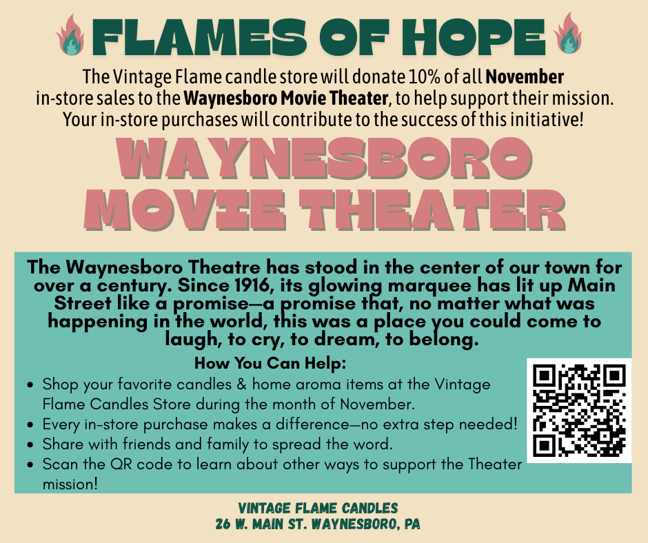 Discover The Vintage Flame Candles storefront located at 26 W. Main Street in Waynesboro, PA. Browse our wide array of offerings, which features pre-made candles, wax melts, seasonal specials, our DIY Home Aroma Bar, and the opportunity to create your very own custom candle!